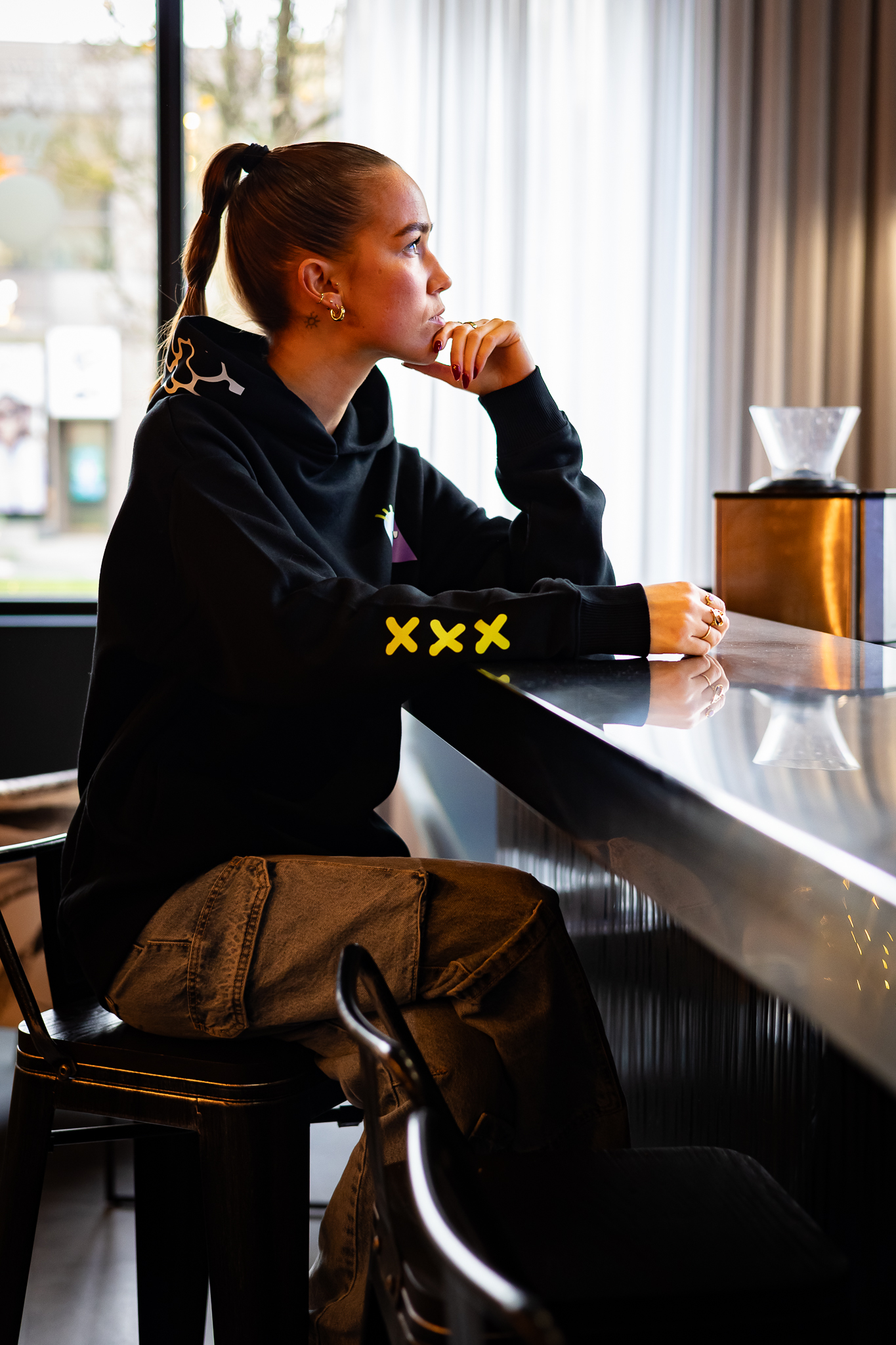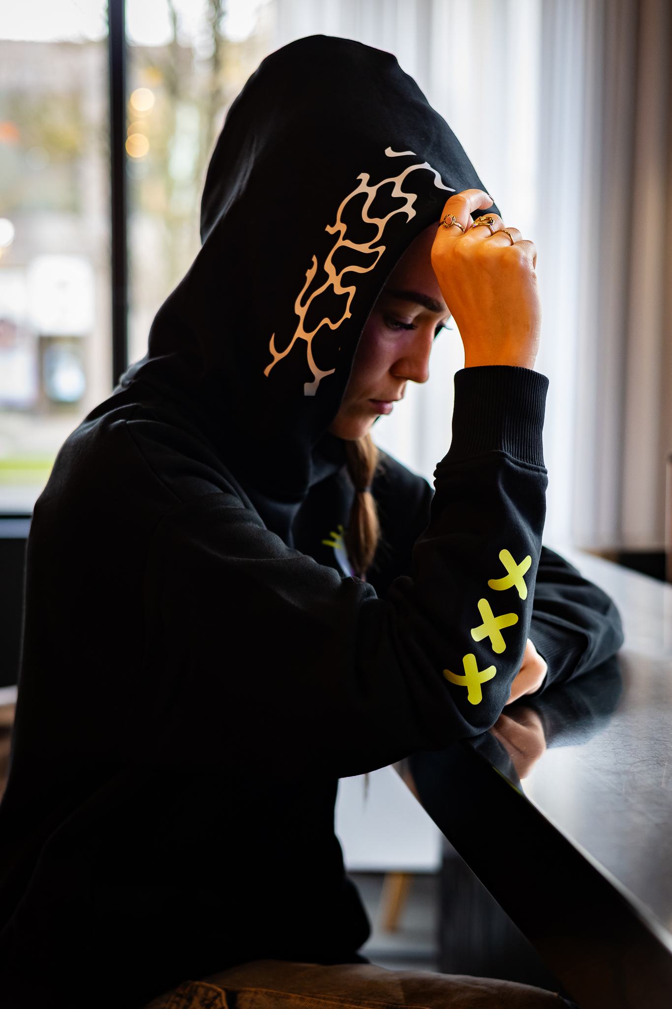 la capuche, avec un graphisme signature visible et assumé,